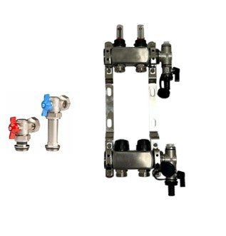 Edelstahl Heizkreisverteiler Fußbodenheizung 2 Heizkreise inkl Kugelhahnset Eck Anschluss Lang