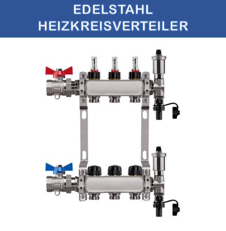 Edelstahl Heizkreisverteiler Fußbodenheizung 3 Heizkreise inkl Kugelhahnset gerade Anschluss