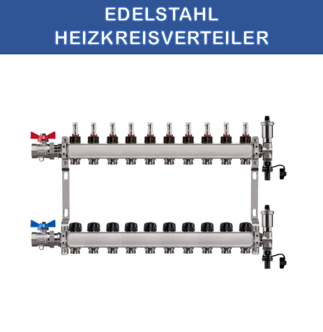 Distribuitor de circuit de incalzire din otel inoxidabil pentru incalzire in pardoseala 10 circuite de incalzire tur si retur sunt compensate pentru o mai buna instalare a conductelor.