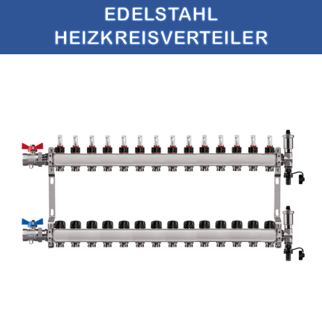 Edelstahl Heizkreisverteiler Fußbodenheizung 14 Heizkreise inkl Kugelhahnset gerade Anschluss