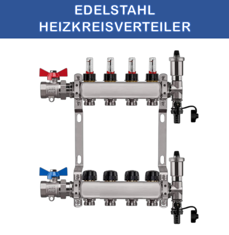 Distribuitor de circuit de incalzire din otel inoxidabil pentru incalzire in pardoseala. 4 circuite de incalzire. Debitul și returul sunt compensate pentru o mai bună instalare a conductelor.