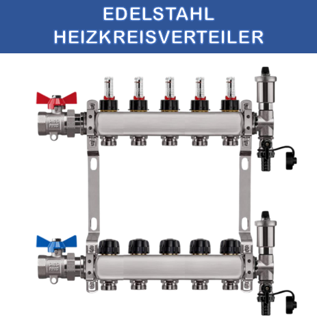 Distribuitor de circuit de incalzire din otel inoxidabil pentru incalzire in pardoseala. 5 circuite de incalzire. Debitul și returul sunt compensate pentru o mai bună instalare a conductelor.